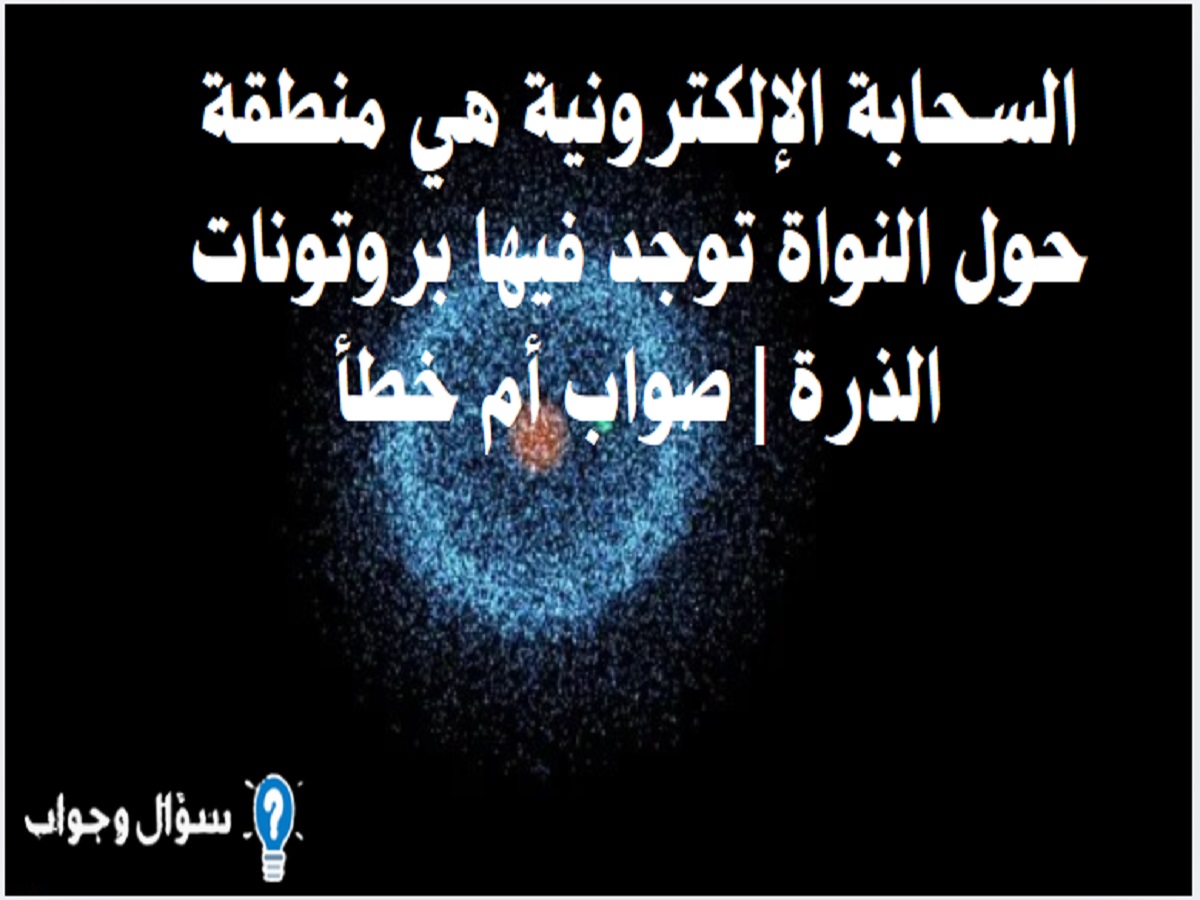 السحابة الإلكترونية هي منطقة حول النواة توجد فيها بروتونات الذرة | صواب أم خطأ