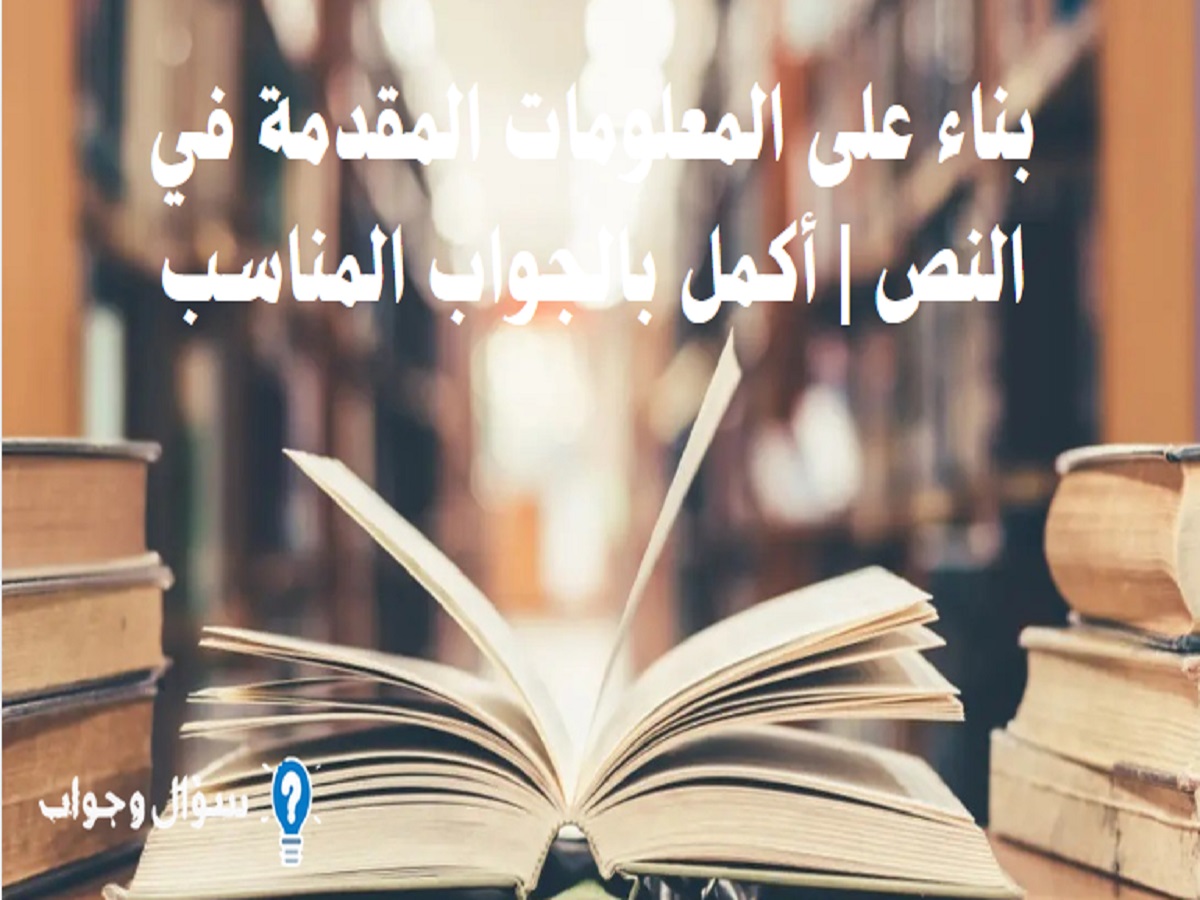بناء على المعلومات المقدمة في النص | أكمل بالجواب المناسب