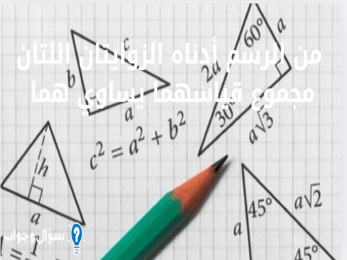 من الرسم أدناه الزوايتان اللتان مجموع قياسهما يساوي هما : كان هذا السؤال من بين الأسئلة التي يبحث الطلاب عن إجابة لها في مادة الرياضيات، ومن خلال هذا الموضوع سنجيب عليكم بالجواب النموذجي والصحيح مع بعض التعريفات والمصطلحات التي تخصه، وللتعرّف على كل ذلك تابعوا معنا تقرير اليوم حتى سطوره الأخيرة.