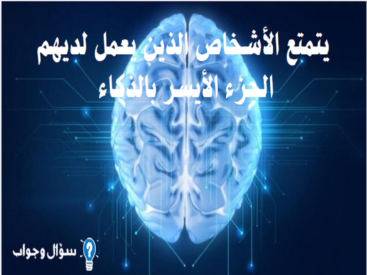 يتمتع الأشخاص الذين يعمل لديهم الجزء الأيسر بالذكاء .. أكمل العبارة
